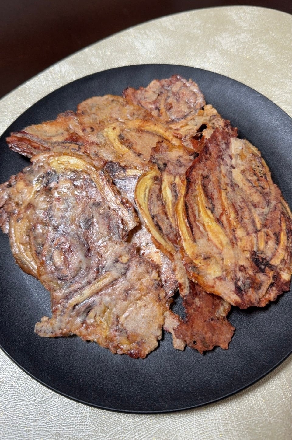 イカゲソにせんべい粉をまぶして鉄板ではさみ焼きしているので、イカの旨みがぎゅっととじこめられています。